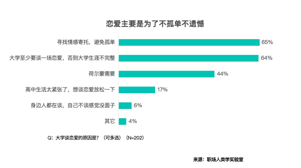 到穿越校区加入勾当,大学生们是从力军。适用从义的消费不雅之下,44%%坦言荷尔蒙需求是爱情的缘由。只要32% 的受访者把爱情当 “大学必修课”,